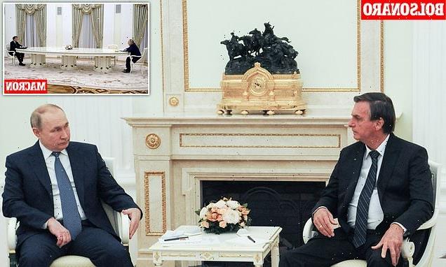 In from the cold: Putin ditches 20ft table he used to keep Macron at bay for cosy trade talks with Brazil’s Bolsonaro – as threat of war with Ukraine looms large