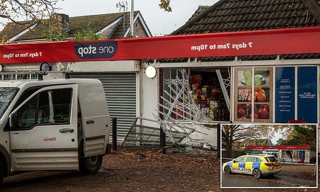 A spokesman for Thames Valley Police said on Thursday evening: ‘At around 11.47pm on Wednesday officers were called by a number of members of the public to a shop in Barkham Ride, with reports suggesting offenders were trying to gain access to the shop using a van.