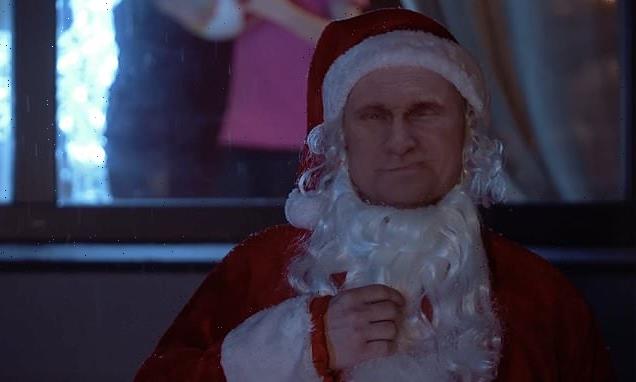 Pictured: Russian President Vladimir Putin is portrayed as Santa in an anti-Western propaganda video released in the country