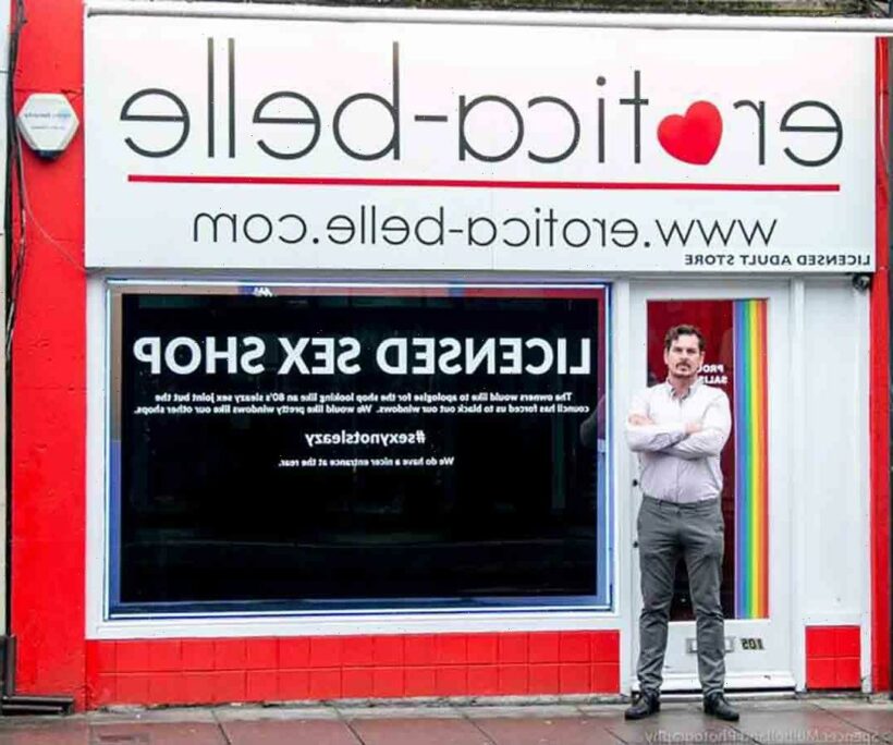 He has spent £1,800 erecting black blinds with "licensed sex shop" written in large white letters.