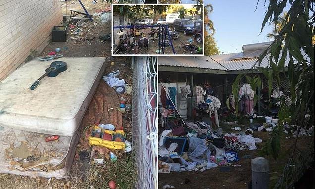A single mother in the Northern Territory has claimed her home has been turned to a rubbish tip by her rowdy neighbours (above)