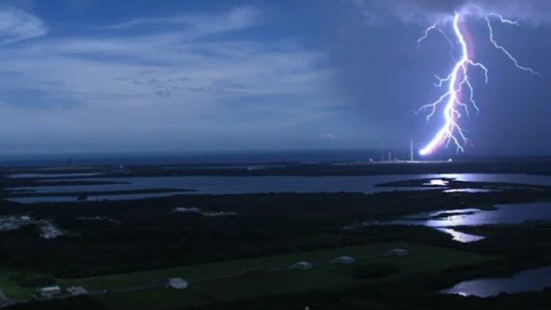 Five strikes were confirmed, hitting the 183-metre lightning-protection towers surrounding the rocket at NASA’s Kennedy Space Centre. The strikes weren’t strong enough to warrant major retesting.