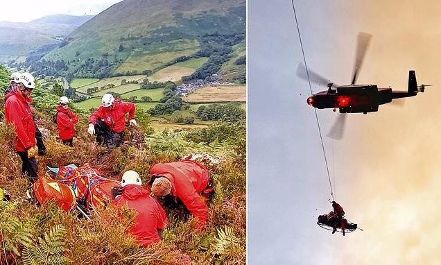 - One man had collapsed while the other was found to have taken a ‘tumbling fall’ It took nearly six hours and 17 volunteers to get the men to safety