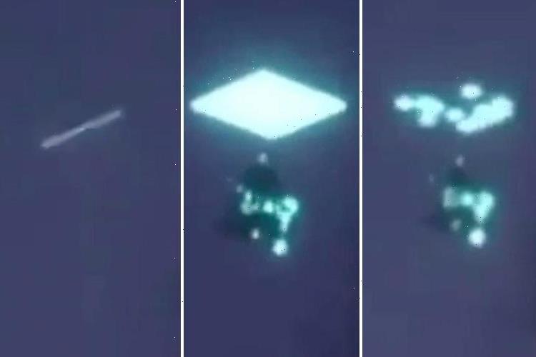 CONSPIRACY theorists are trying to explain a bizarre video which they believe shows a UFO disappear inside another before they both vanish.