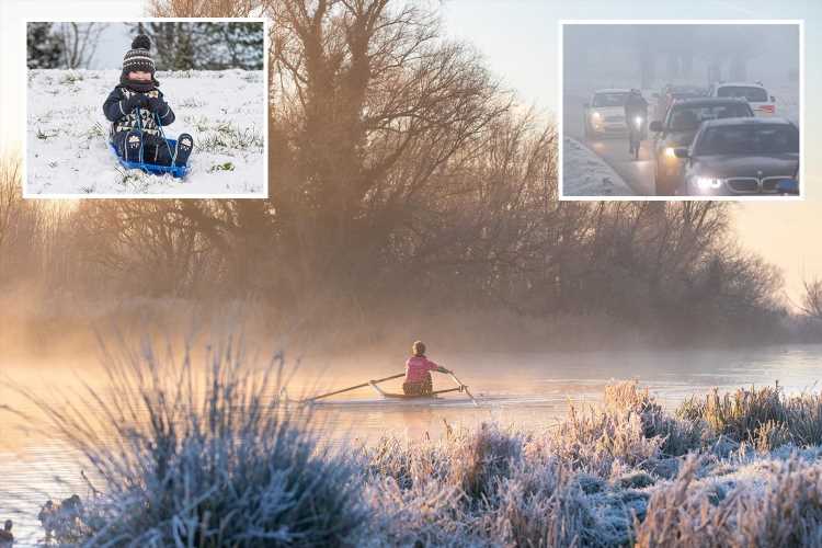 BRITS are being warned of plummeting, freezing temperatures, with severe frost set to disrupt traffic and flights, as the mercury drops as low as -7C.
